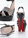 [16cmヒール]トリプルクロスビジューラインストラップ付きキャバヒールサンダル[dazzyオリジナル]