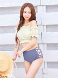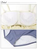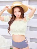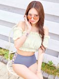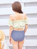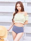 ふんわりとギャザーを寄せたフリルのオフショルデザインが可愛らしいビキニ。胸元を隠すことができるので露出に抵抗がある方や小胸さんにもオススメ◎ サイドレースアップの肌魅せがトレンドライクな1着です♪