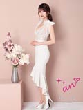 [an]シアーフラワーチュールリボンフィッシュテールマーメイドキャバドレス[AOC-3540 ]