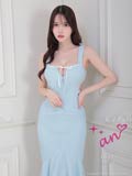 [an]ショルダーリボンウエストシアーフィッシュテールマーメイドキャバドレス[AOC-3688]