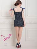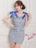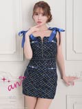 [an]チェックツイードジップショルダーリボンタイトミニ丈キャバドレス[AOC-3545]