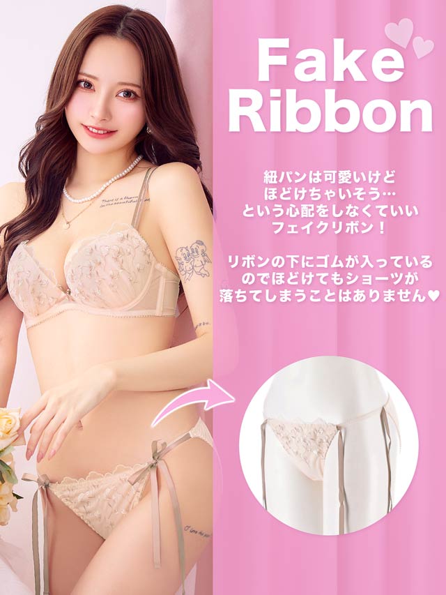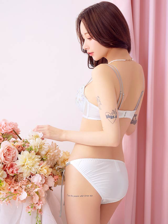 可憐なフラワー刺繍や丸みのあるスカラップデザインがフェミニンなムードを演出するランジェリー。細めのダブルストラップは取り付け方次第で3通りのアレンジが可能で、背中見せファッションも楽しめちゃいます♪ショーツのリボンはほどけても安心な飾りリボン仕様です◎