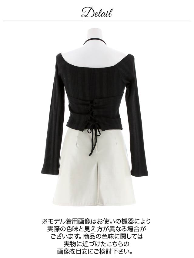 レイヤードデザインがお洒落なラウンジセットアップ。バックのレースアップと大胆なオープンショルダーが色気漂います◎ 長袖仕様でお仕事でもプライベートでも着回せる一着です♪