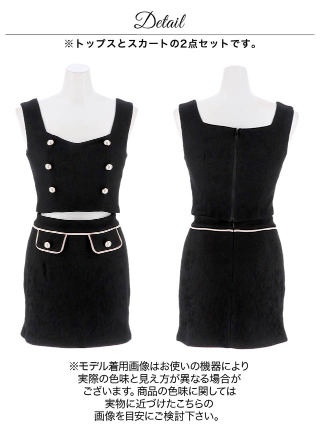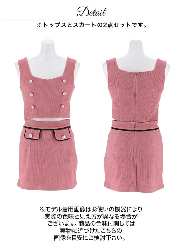 これからの季節にぴったりなコーデュロイ調素材のセットアップ。上品なパールボタンや、ウエストまわりの配色ラインがシンプルな中にアクセントをプラス♪着まわし力抜群でお仕事だけでなく私服としても使えるアイテムです◎