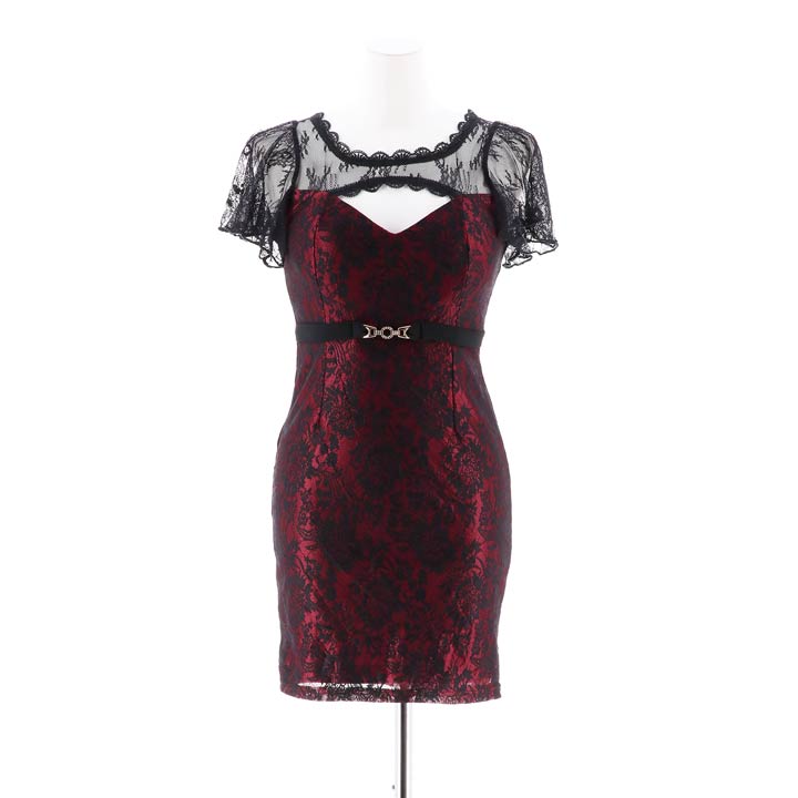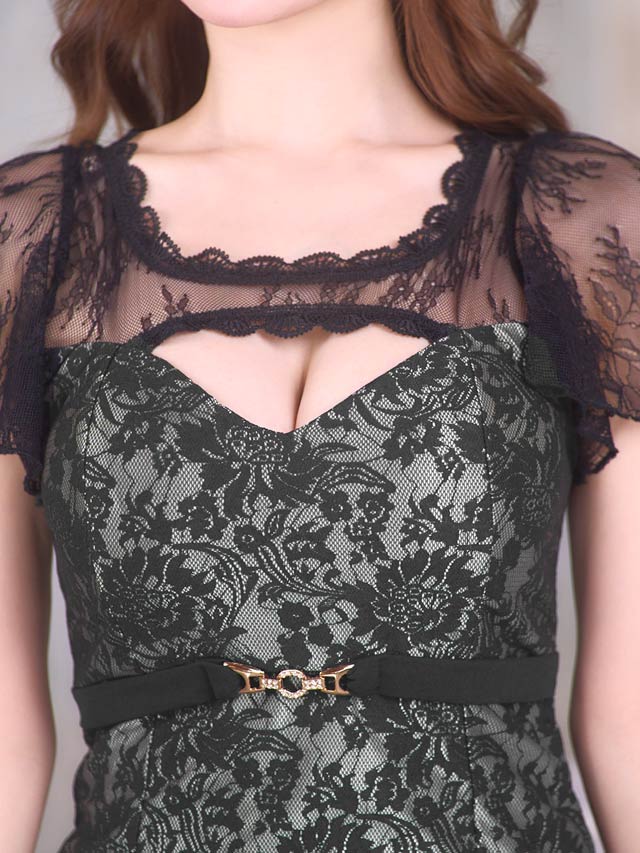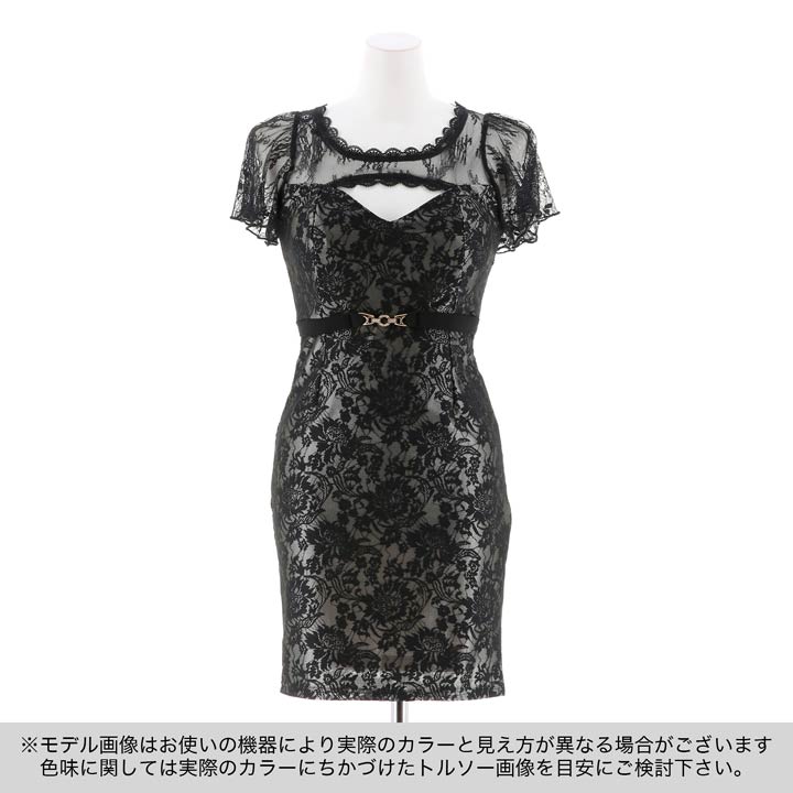 ブラックのフラワーレースがシックで大人な雰囲気のミニドレス。レースの透け感や谷間が覗くカットアウトがセクシーなデザイン♪フェイクベルト付きでウエストマークができ、くびれ見せ効果もバツグンです◎