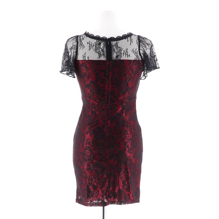 [SMLサイズ]フラワーレースカットアウトフレア袖タイトミニドレス[3サイズ展開]