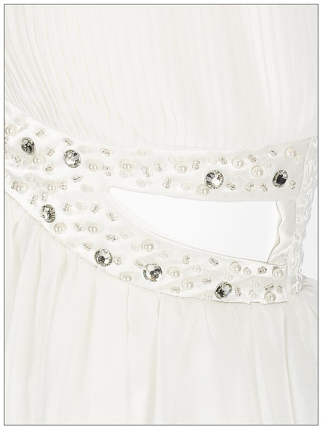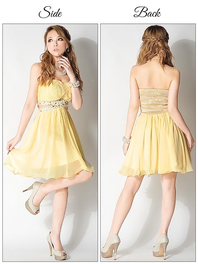ビジュー付きウエストカットベアフレアミニドレス