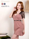 フロントジップシアーレース袖ベルト付きマーメイドミニ丈キャバドレス[XS~L/4サイズ展開]