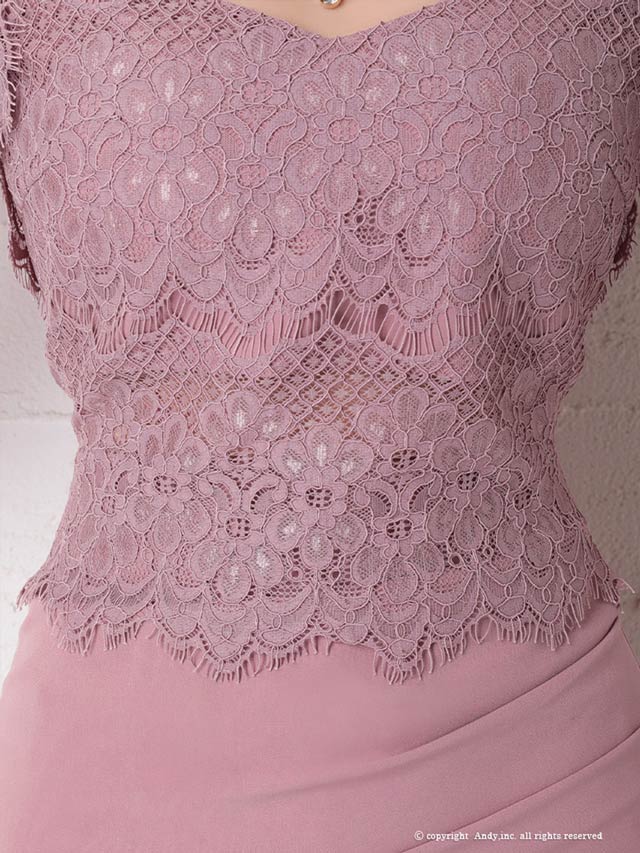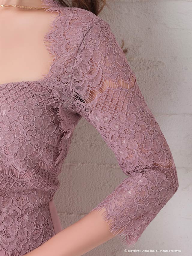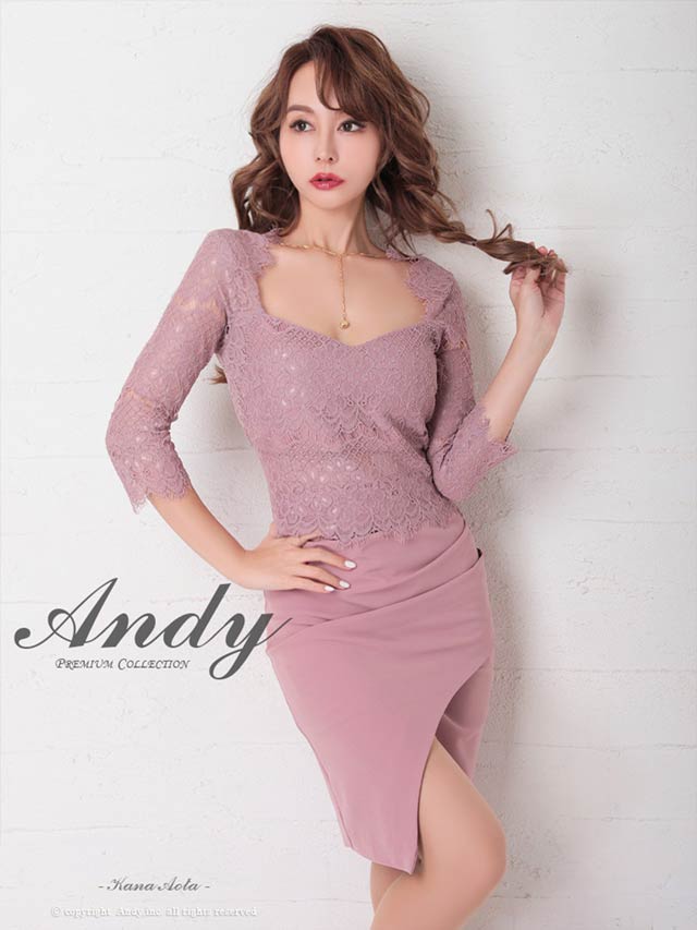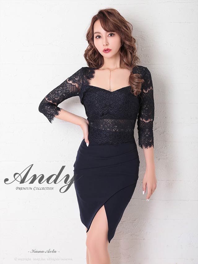 【ポイント20倍】[Andy]ビジューネックレスフラワーレース七分袖スリットタイトミニ丈キャバドレス[AN-OK2685]