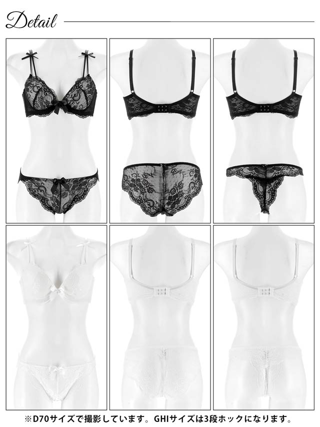 【GHIサイズ】【3点セット】モノトーンレーシィリボン育乳ブラジャー&バック透けフルバック&Tバックショーツ[推し]の格安通販はキャバドレス通販のdazzyStore。雑誌で話題の【GHIサイズ】【3点セット】モノトーンレーシィリボン育乳ブラジャー&バック透けフルバック&Tバックショーツ[推し]をDazzyStoreで激安購入!可愛い【GHIサイズ】【3点セット】モノトーンレーシィリボン育乳ブラジャー&バック透けフルバック&Tバックショーツ[推し]で他の子に差をつけちゃおう♪【GHIサイズ】【3点セット】モノトーンレーシィリボン育乳ブラジャー&バック透けフルバック&Tバックショーツ[推し]以外のアイテムも豊富に取り揃え。更に商品代金11000円(税込)以上で送料無料!