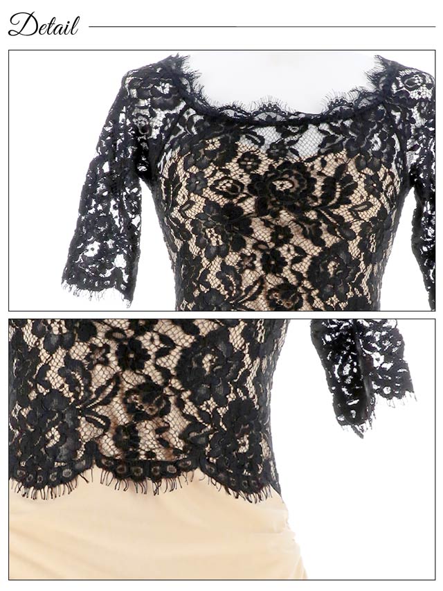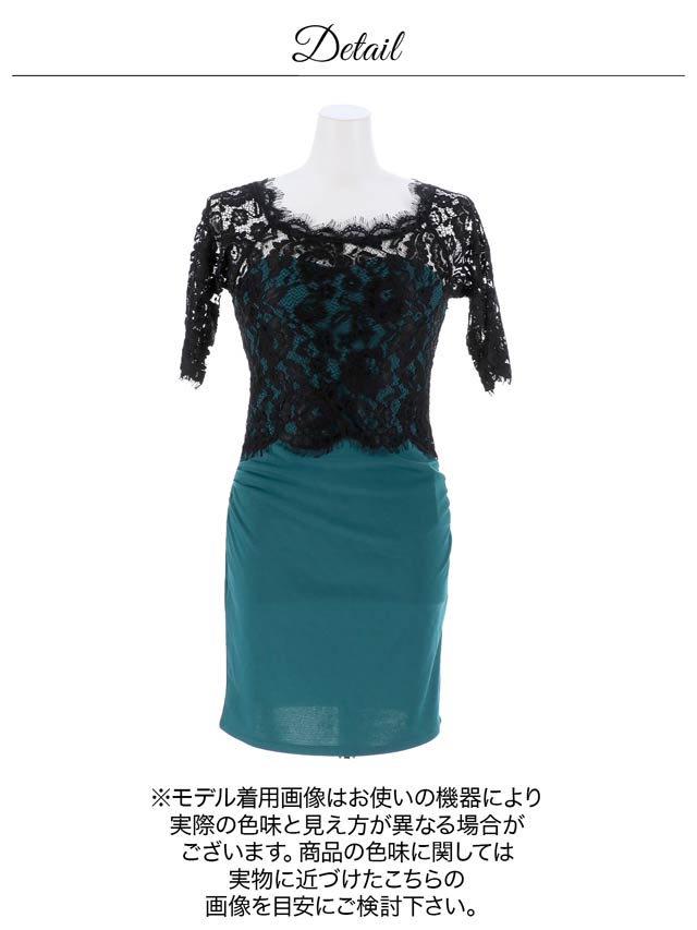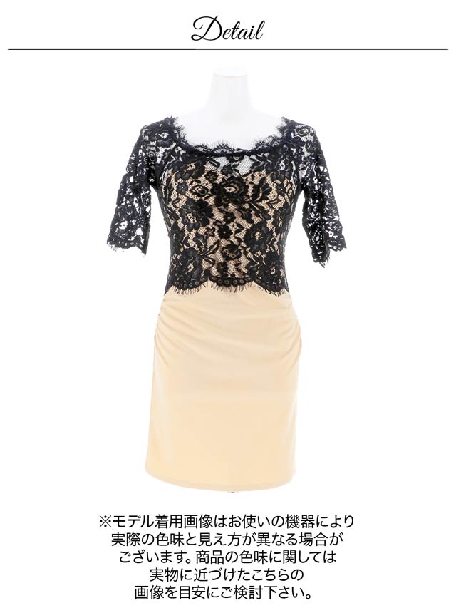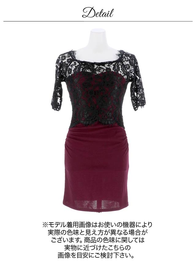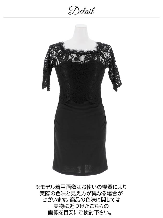 ブラックのフラワー柄レースが大人上品さを演出するミニドレス。ほんのり素肌が透けるレースの五分袖で二の腕をさりげなくカバー◎スカートフロントのドレープデザインで華奢見せ効果も叶う一着です♪