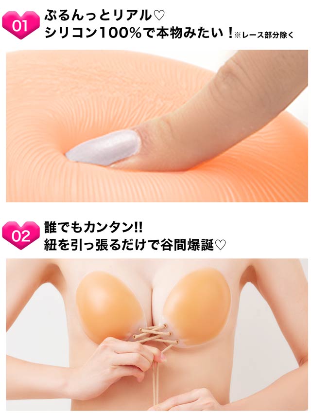 しっとりぷにゅぷにゅシリコン100%タイプ!!本物みたいな触感と盛りで、より自然にバストアップできちゃいます♪