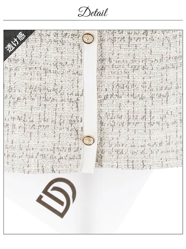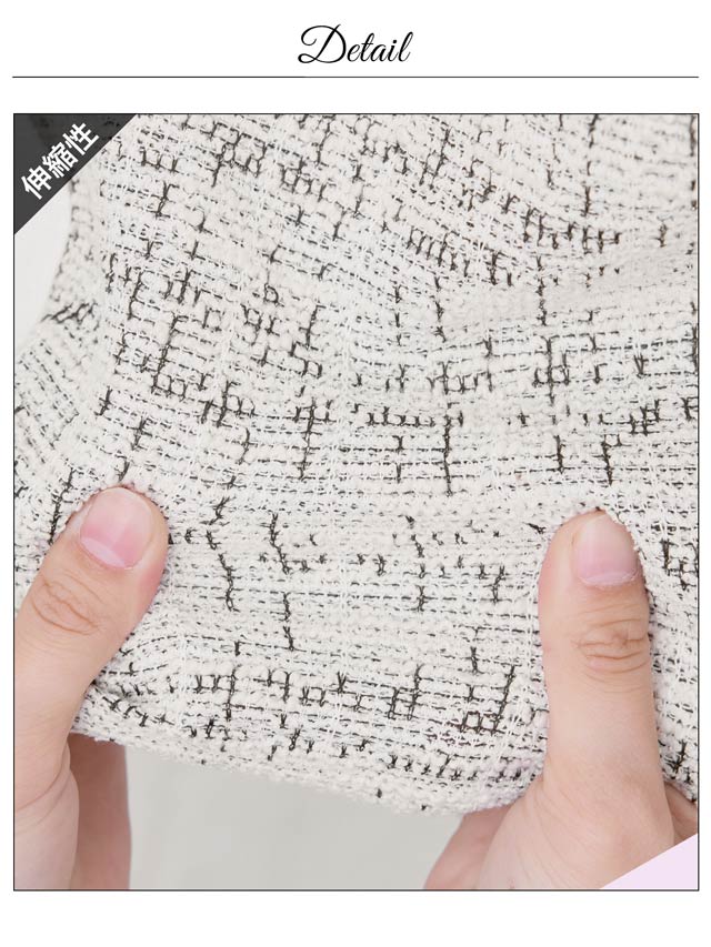 万人受けな品のあるツイードにゴールドボタンで高級感を添えたミニドレス。フロントにはバストをチラ見せするファスナー付き♪自由に調整して露出控えめにもセクシーにも着こなせちゃいます!伸縮性のあるストレッチツイード素材なので着心地が快適なのも魅力です◎