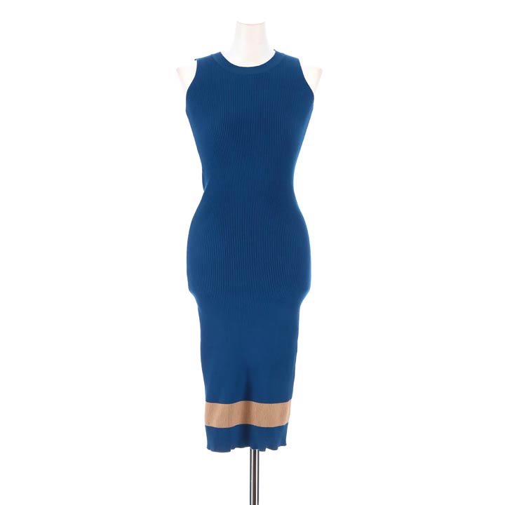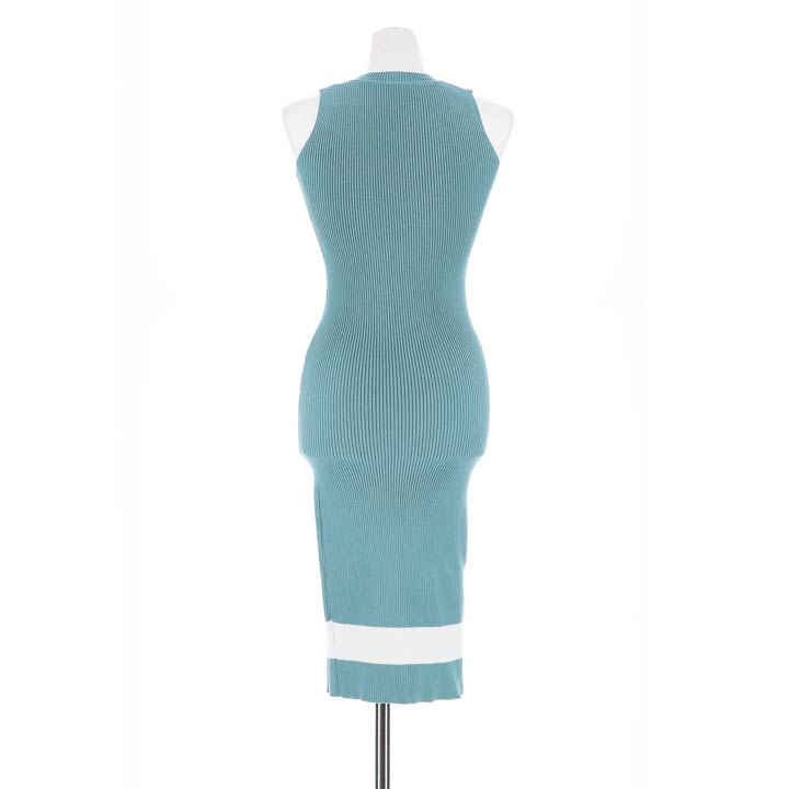 脚元の配色ラインでシンプルな中にアクセントを加えたリブニットワンピース。ノースリーブ&身体に沿うタイトなシルエットが大人っぽいデザイン♪お仕事着でも私服でも幅広いシーンで使えるアイテムです◎