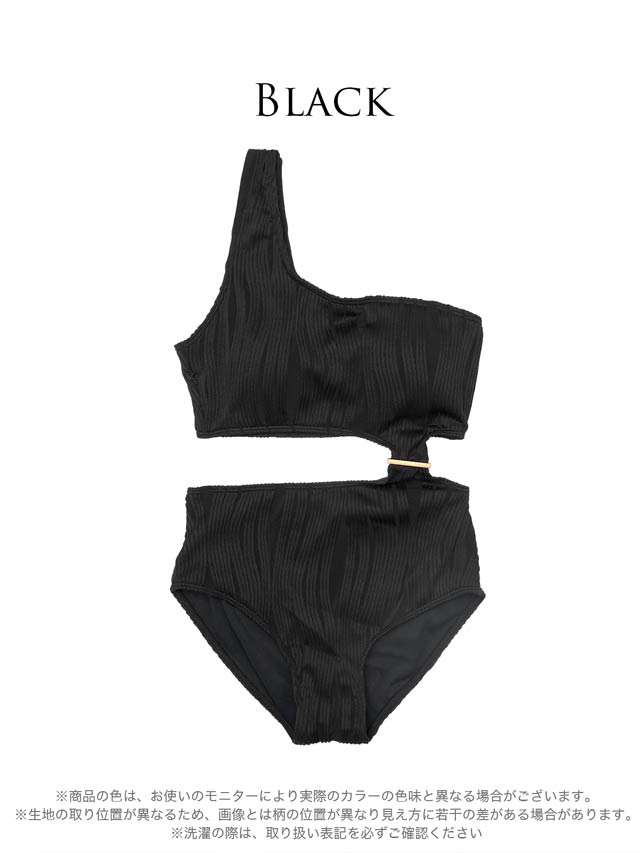 大胆なウエストカットアウトがトレンド感溢れる肌魅せを叶えるワンピース水着。細かいプリーツ加工にゴールドのビジューが高見えなアクセントに◎ ワンショルダー仕様の女性らしさ際立つ肩見せも存在感ある着こなしを実現します♪