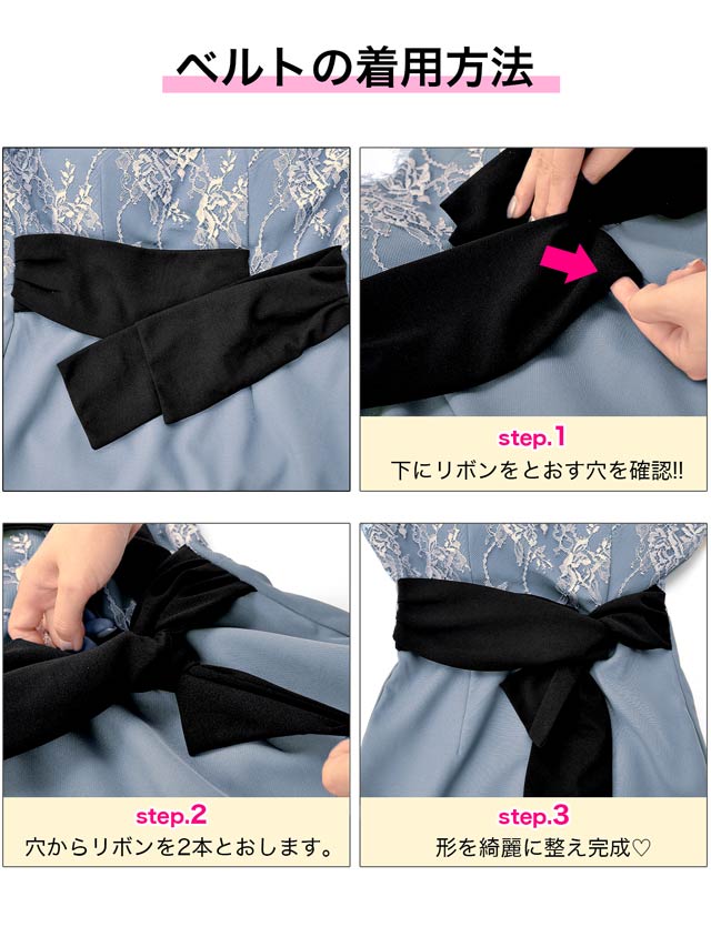 ※ウエストをリボンベルトで絞って細く見せられる