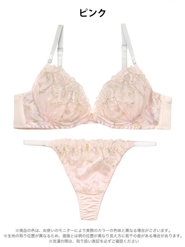 1/14新作!【Tバック】フェミニンバタフライエンブロイダリーブラジャー&Tバックショーツ[推し][人気]
