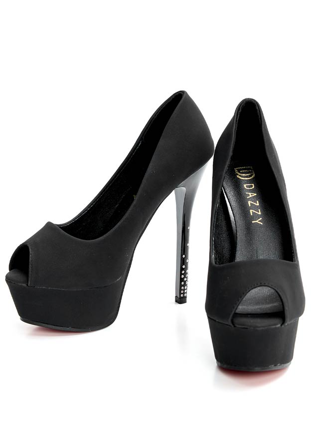 1/21新作![14cmヒール]シンプルラインストーンオープントゥキャバヒールパンプス[dazzyオリジナル]