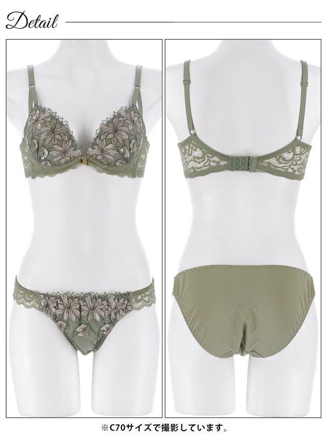レースと大きな刺繍が上品なランジェリー。レース部分のさりげない肌見せが色っぽいデザインです。フルバック仕様なのでヒップにフィット感があります◎甘さ控えめで大人セクシーな1着です。