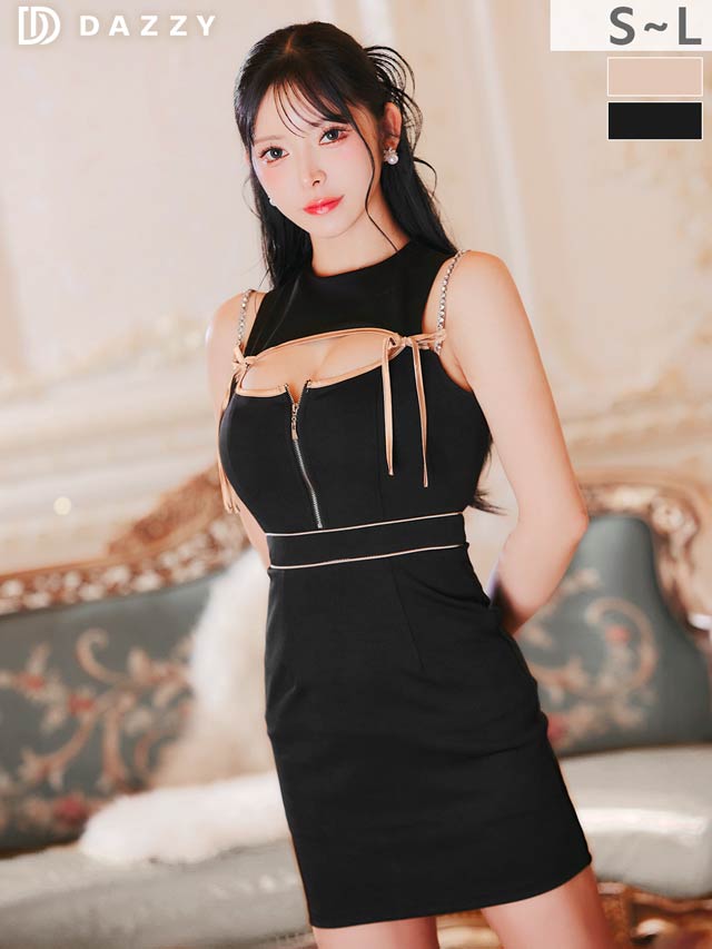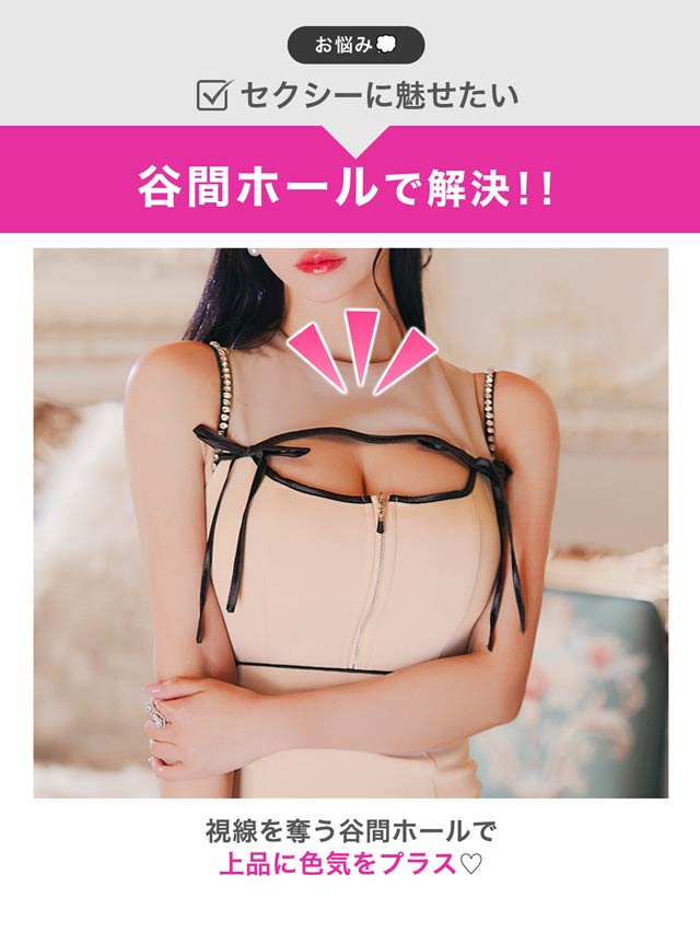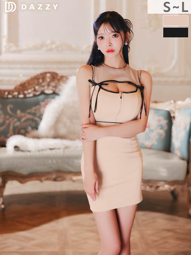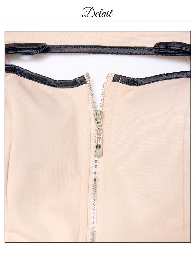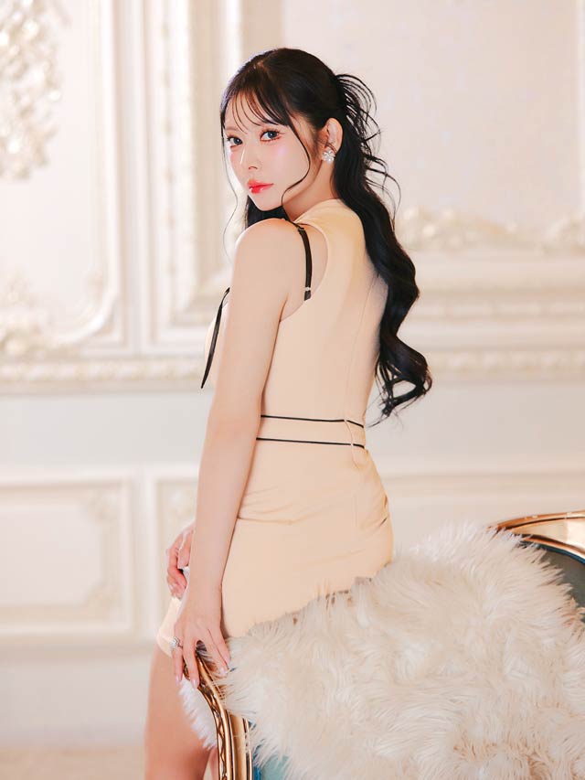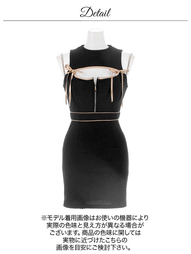 バイカラー配色のパイピング加工が女性らしい曲線美を際立たせるミニドレス。大きく開いた胸元に左右のリボン装飾でセクシーと甘さを掛け合わせた印象に◎ お好みで谷間の見せ方を変えられるのもポイントです!