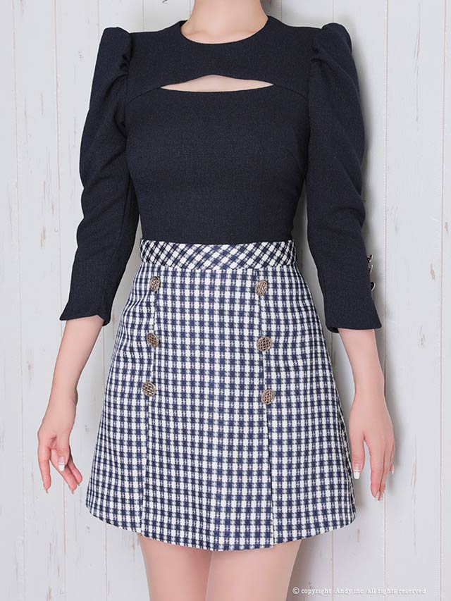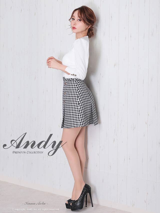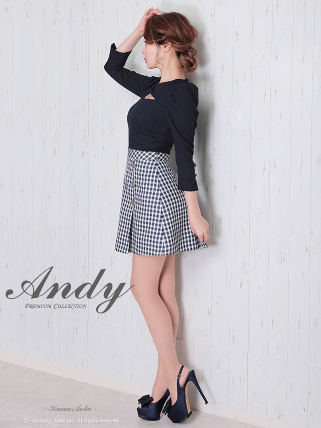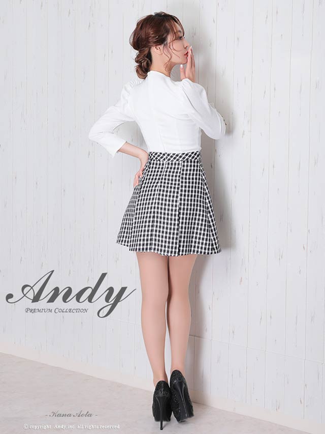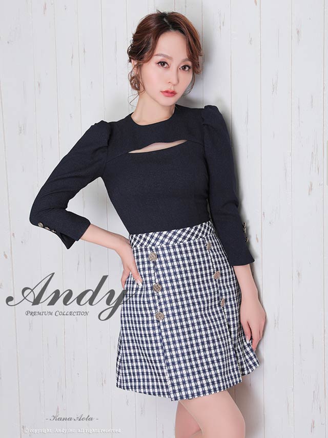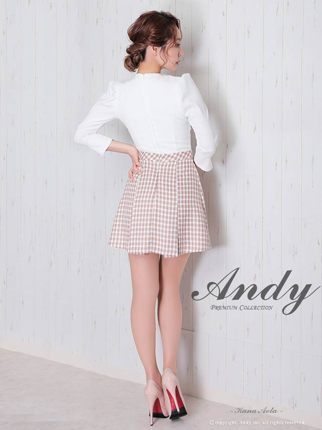 1/27新作!【今だけポイント20倍】[Andy]ツイード切替カットアウト七分袖Aラインミニ丈キャバドレス[AN-ON2737]