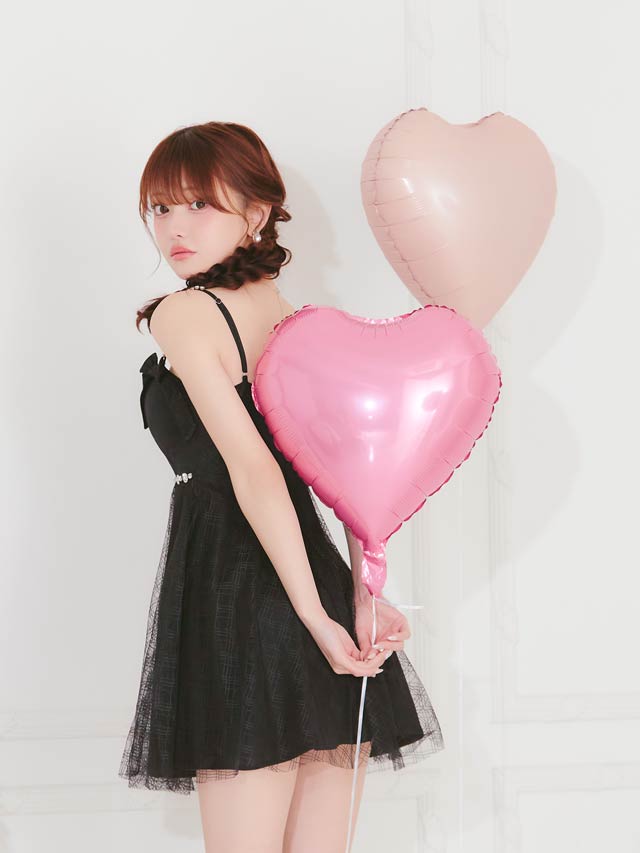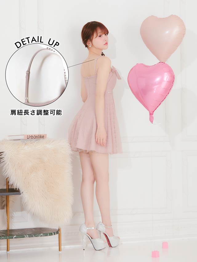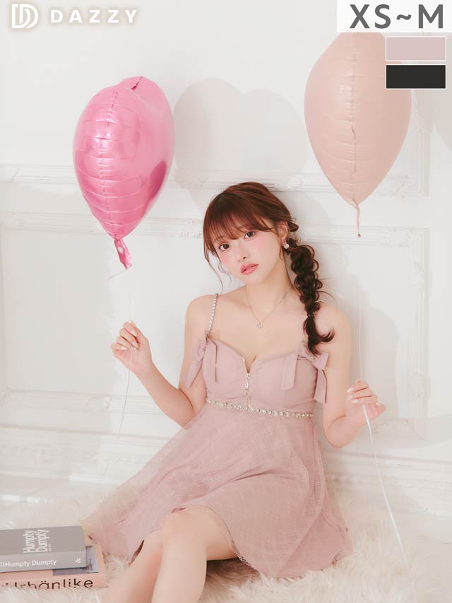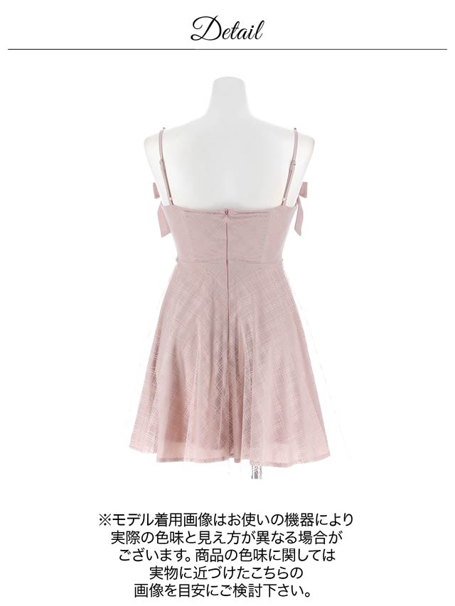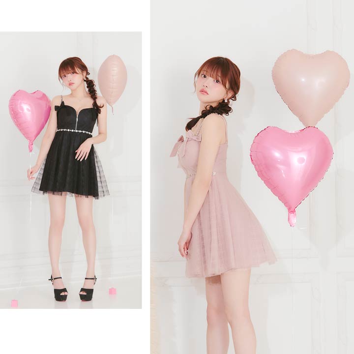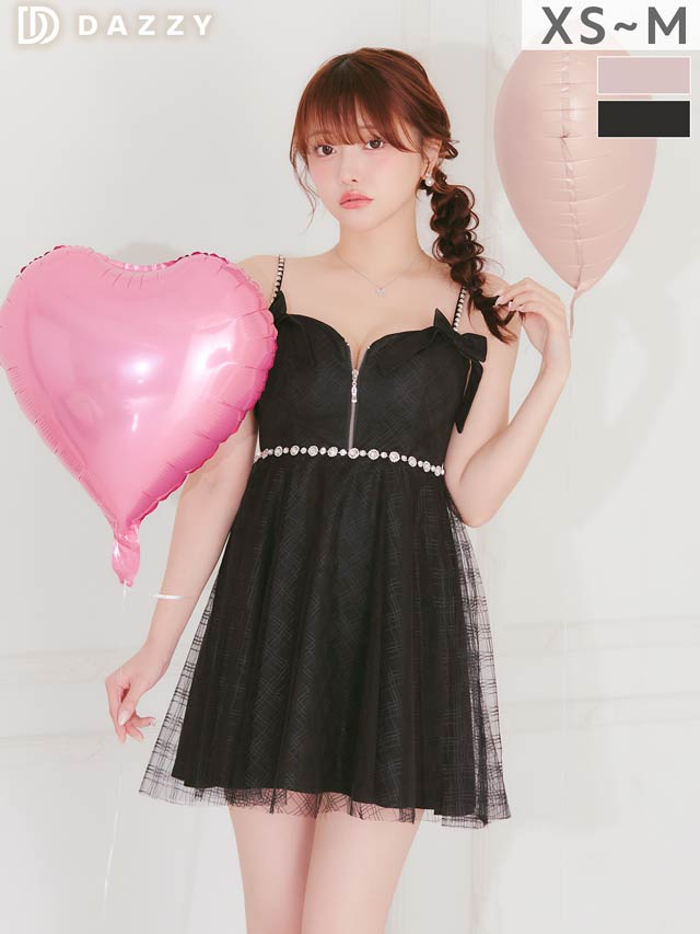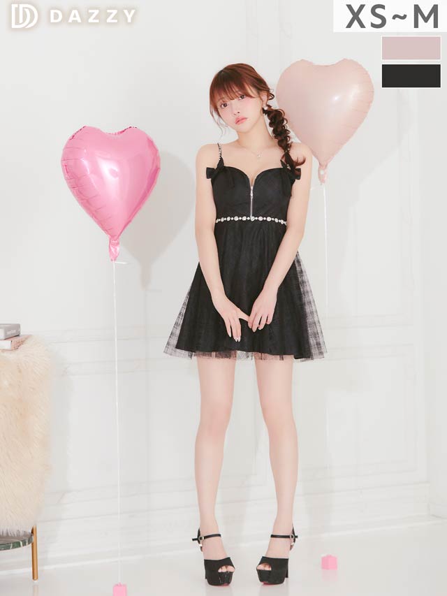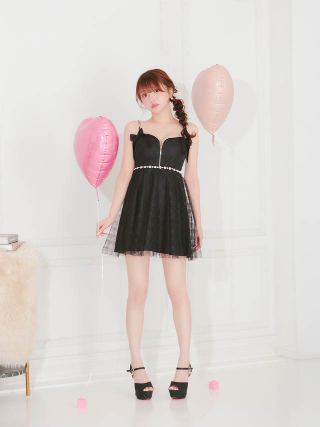 チェック柄&リボンのガーリーなデザインに、きらめくビジューで高級感をプラスしたキャバドレス。甘めな印象ながら、フロントジップで胸元の露出を調節してセクシーさも演出できちゃいます◎ふんわり広がるAラインスカートが気になるお尻まわりをカバーしてくれるのもポイント!