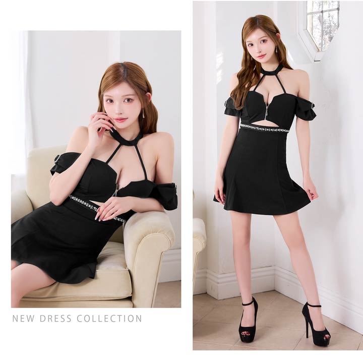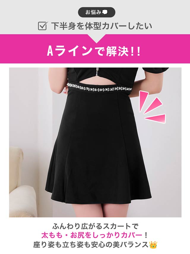 1/30新作!極上のくびれ魅せが叶うジップ×ウエストカットAラインミニ丈キャバドレス[SML/3サイズ展開]