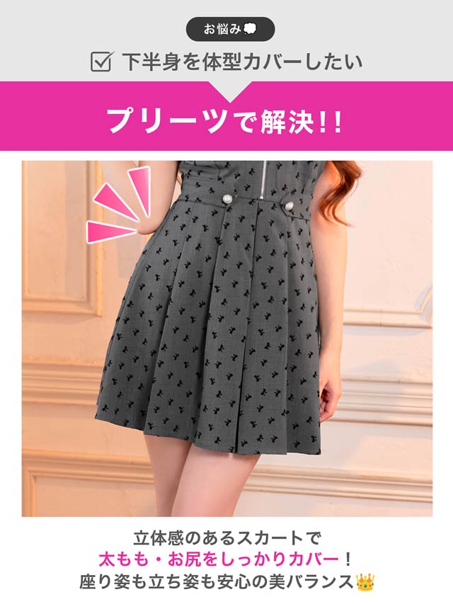 可愛らしいリボン柄をあしらった大人ガーリーな印象のキャバドレス。キャミソールの大胆な肌見せや、谷間を強調するジップデザインがセクシーなアクセントに♪Aラインシルエットでお尻まわりを自然にカバーし、スタイルアップも叶えてくれる一着です!