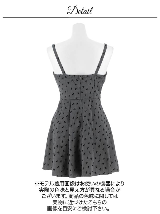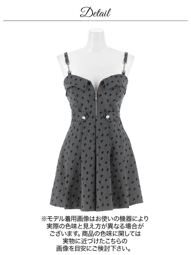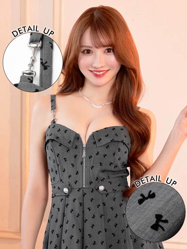 1/5新作!えちあまリボン柄キャミソール×胸元ジップ体型カバーAラインミニ丈キャバドレス