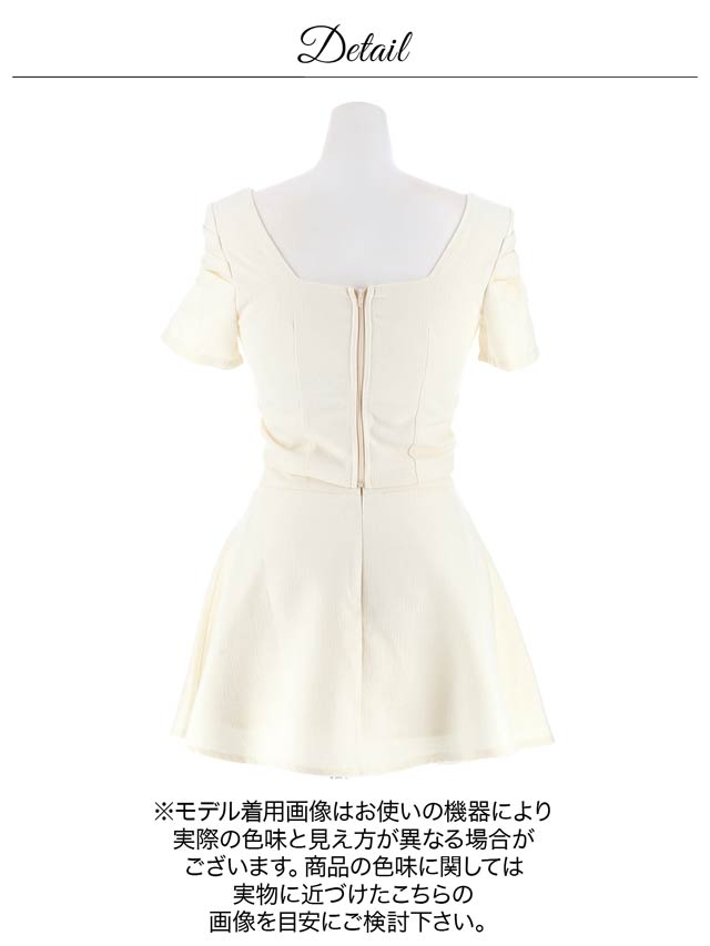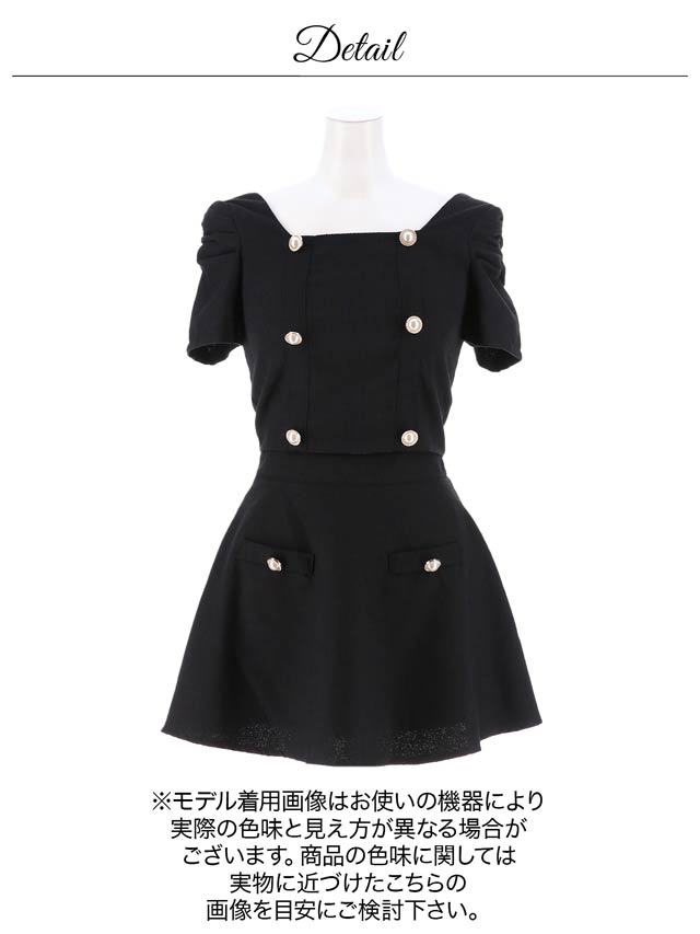 シンプルなデザインながら上品さを感じさせるツイード素材のセットアップドレス。高級感のあるパールボタン装飾がアクセントになっています♪袖有り&Aラインのスカートで気になる二の腕や下半身のカバーもばっちりです◎