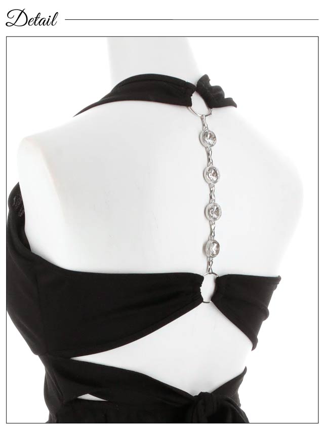 後ろ姿からも色気溢れるカットアウトデザインに背中心で輝くシルバービジューがエレガントなワンピース。鎖骨から肩先にかけてのラインを美しく見せてくれるホルターネック仕様でこなれ感もばっちり。パーティーシーンでも活躍するラグジュアリーな1着です♪