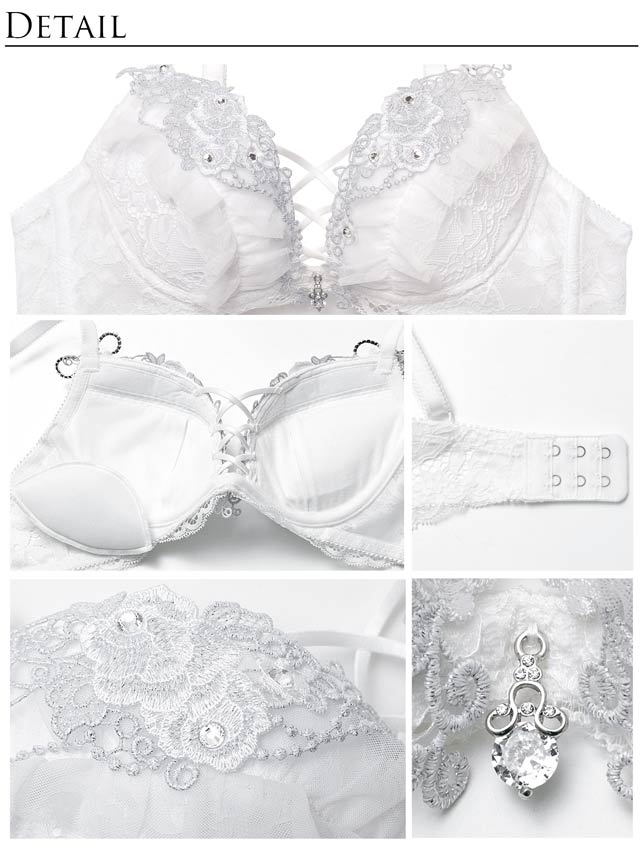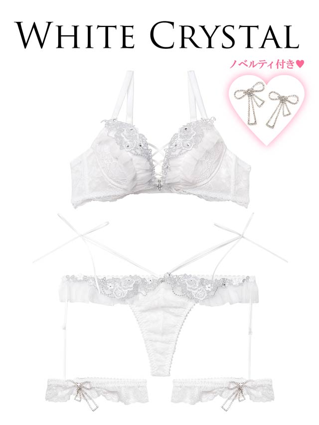 大人気の クイーンローズビジューシリーズ(品番:3c98042)から純白のホワイトカラーが登場!ビジューをたくさん散りばめた華やかでドレッシーなランジェリー!