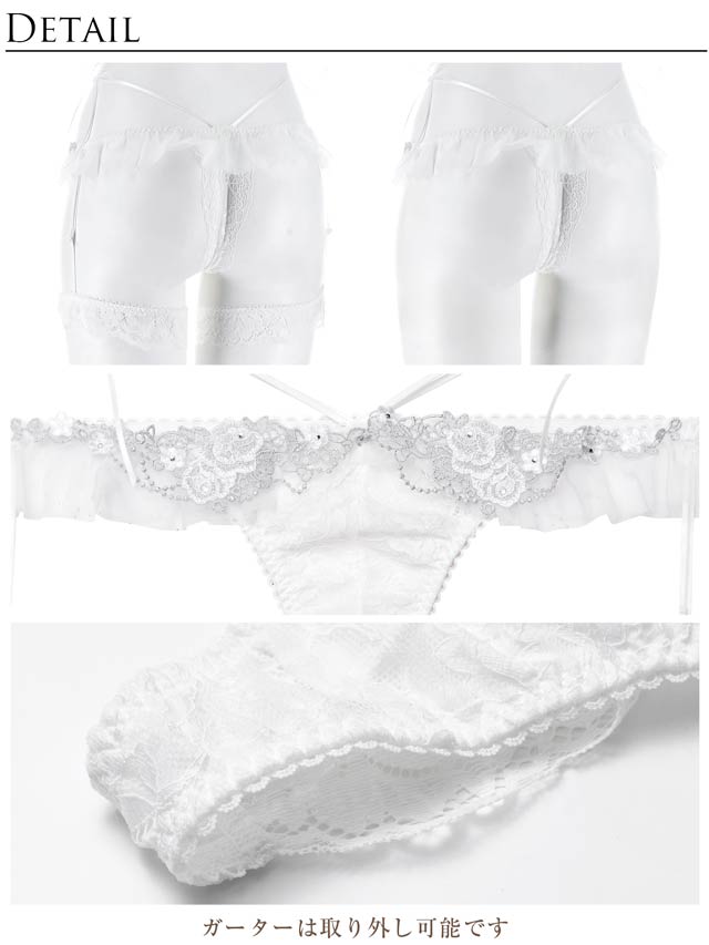 Tバック/クロッチ当て布:有/フロント透け:無し/キャットガーター:長さ調節可、取り外し可
