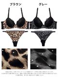 10/1新作!【Tバック】レオパードラインストーン育乳脇高ブラジャー&バック透けTバックショーツ[推し][人気]
