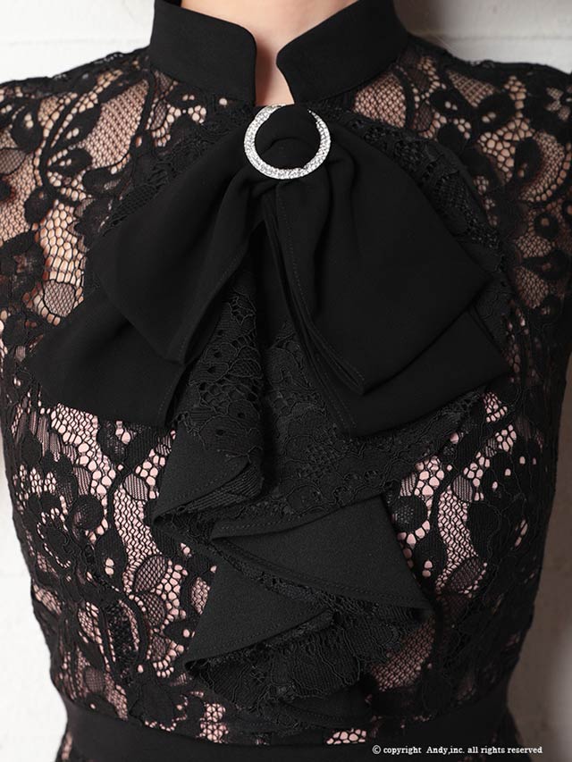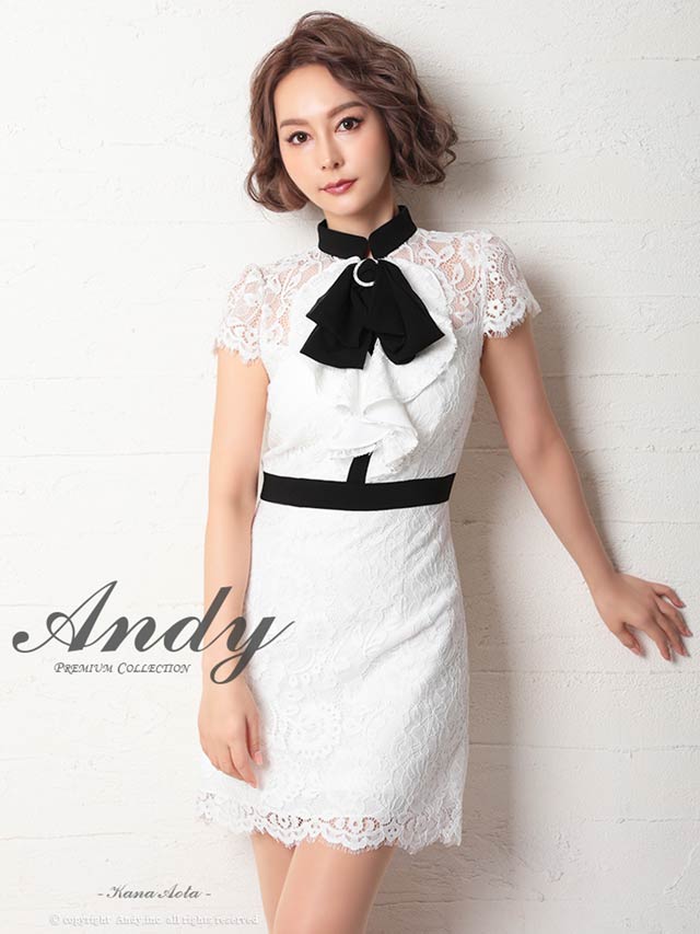 10/13新作![Andy]フラワーレースネックリボンフリルタイトミニ丈キャバドレス[AN-OK2658]