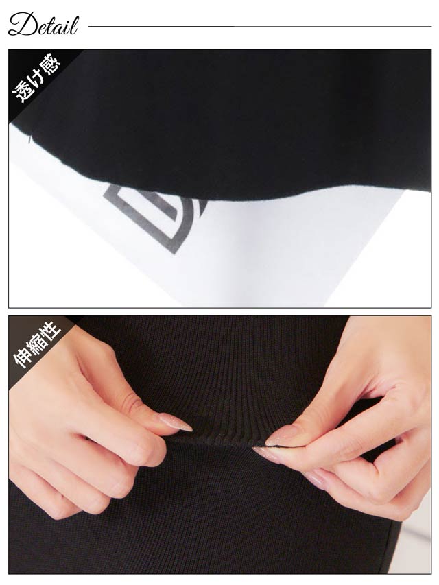 伸縮性に優れたリブ編み素材が、ボディラインに心地よくフィットして美しいシルエットを演出