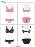 全面フラワーレース仕様と引き寄せられるような同系色のコードを重ねた色気漂うランジェリー。コードから覗く大胆な肌魅せと、リボン装飾のワンポイントが女性らしさたっぷりな1着です◎