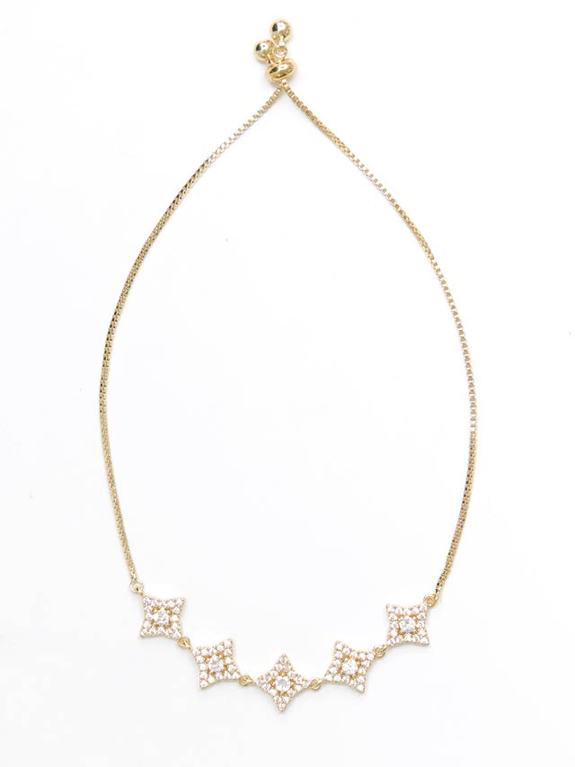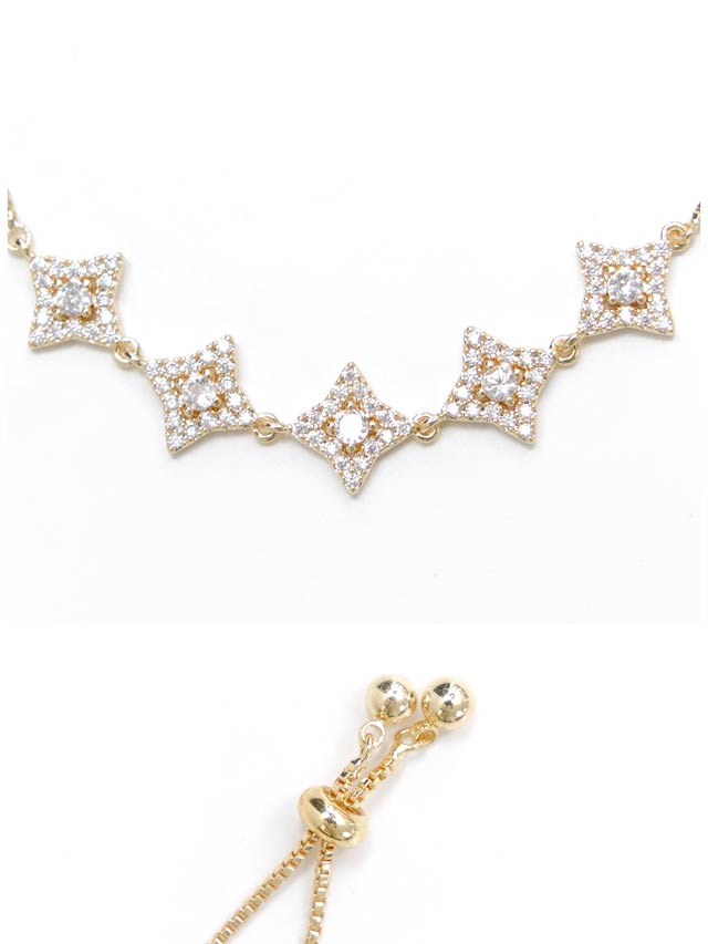煌びやかなスターモチーフの中に1粒ストーンをあしらったブレスレット。手首からコーディネートを格上げしてくれる上品さ際立つ1品。ワンタッチ式で簡単にサイズ調整可能なのも嬉しいポイントです◎