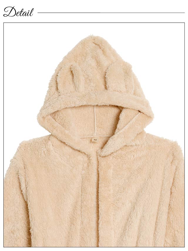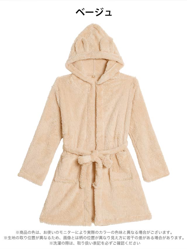 愛らしいくま耳のフードがポイントになった、触り心地の良いモコモコ素材のガウン。スマホや小物などを入れられるポケットが付いているのも嬉しいポイント!リラックスタイムを可愛く&あたたかく過ごせる、これからの季節にぴったりのアイテムです♪