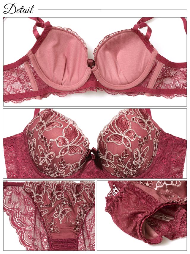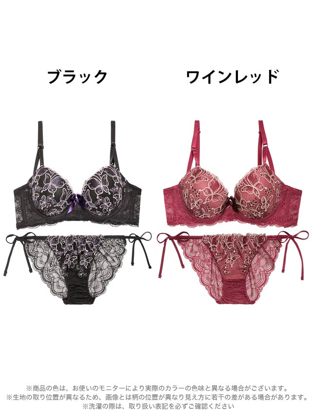 美しい蝶やお花の刺繍が施されたエレガントで大人な魅力漂うランジェリー。胸元には大きなサテンリボンをあしらい、ほどよく可愛らしさを加えました◎ショーツは解けるサイド紐&バック透けレースで360度セクシーなデザインです♪