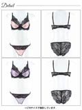 ギャザーを寄せた上品な光沢感のあるサテン生地にブラックレース重ねが大人っぽいランジェリー。バストをしっかり包み込んでくれるフルカップ部分まで施されたレース透けが色気をプラスします◎ サイドストリングのショーツは腰回りを華奢魅せしてくれる1着です。