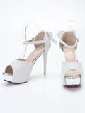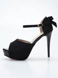 10/7再入荷!シャイニーラメバックリボンオープントゥキャバヒールパンプス[12cmヒール][dazzyオリジナル]