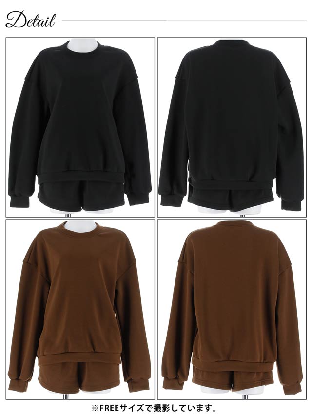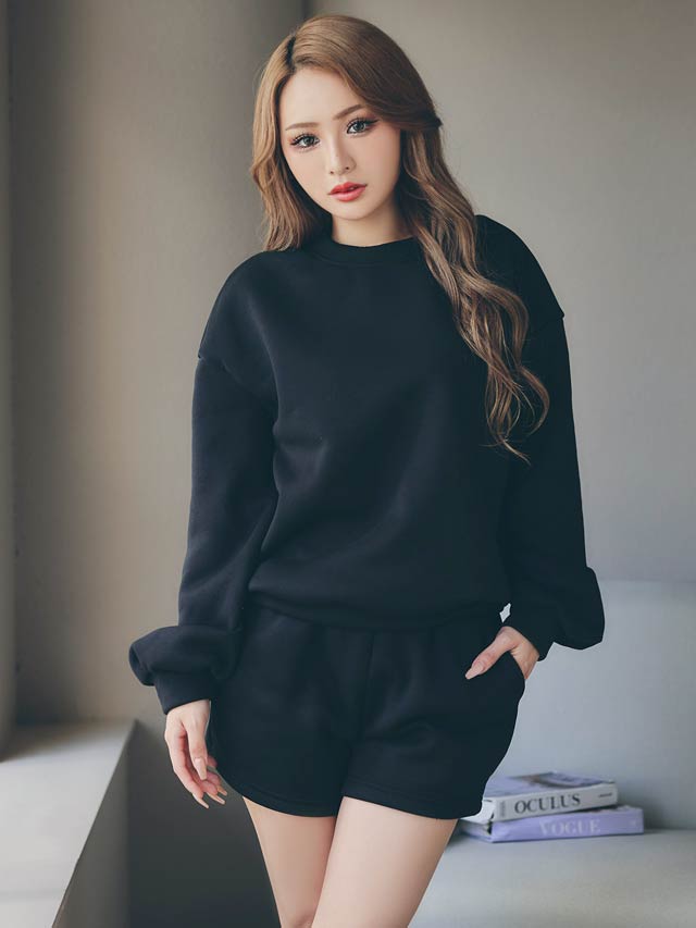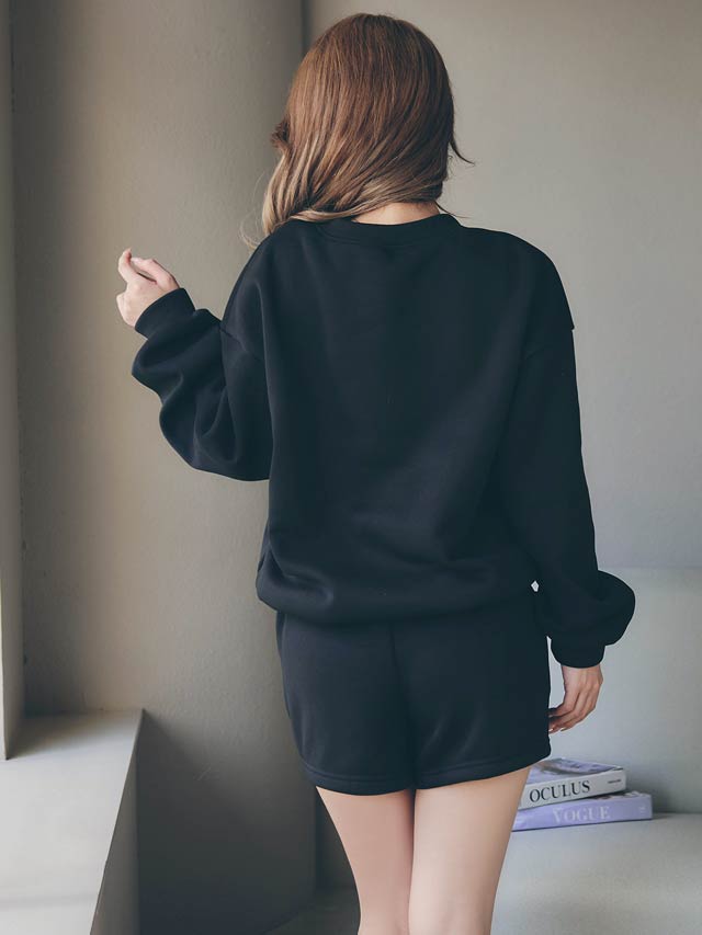 10/8新作!ワンカラー長袖プルオーバー&ショートパンツルームウェア