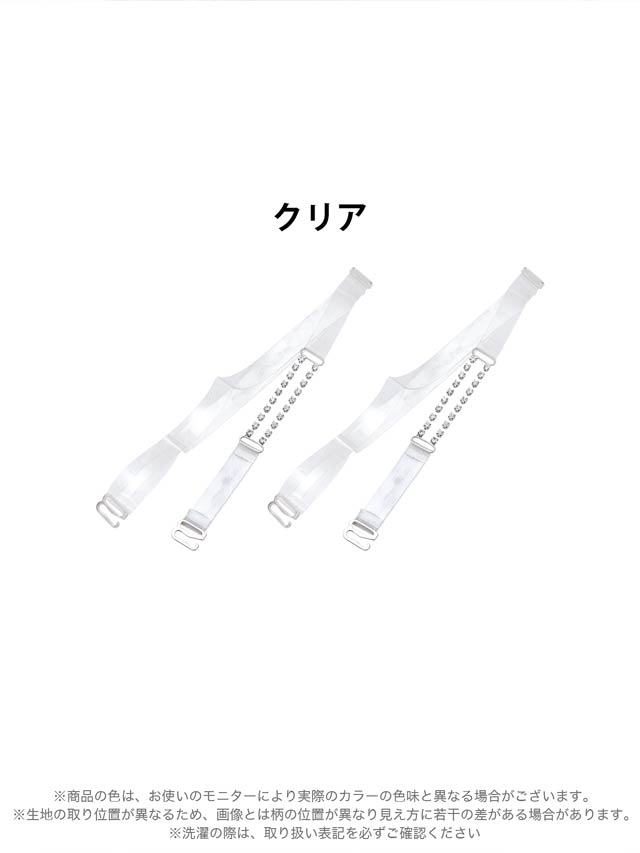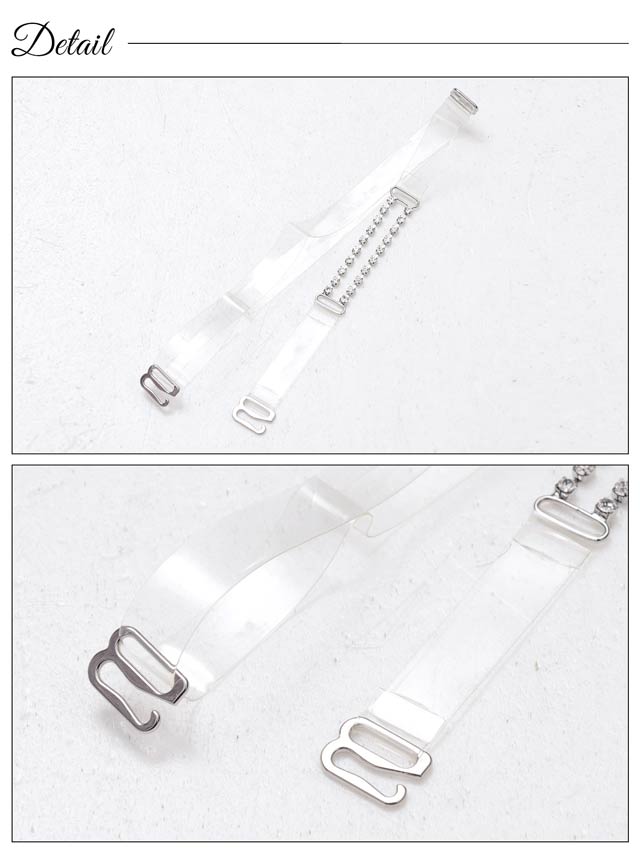きらめくラインストーンがアクセントになった付け替え用ブラクリアストラップ。オフショルなどの肩周りが開いた服でもブラ紐を付け替えて可愛く着こなせる便利アイテム!透明タイプなのでどんなブラジャーとも相性◎アジャスター付きでお好みのサイズに調節可能です♪