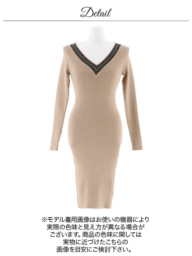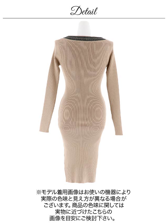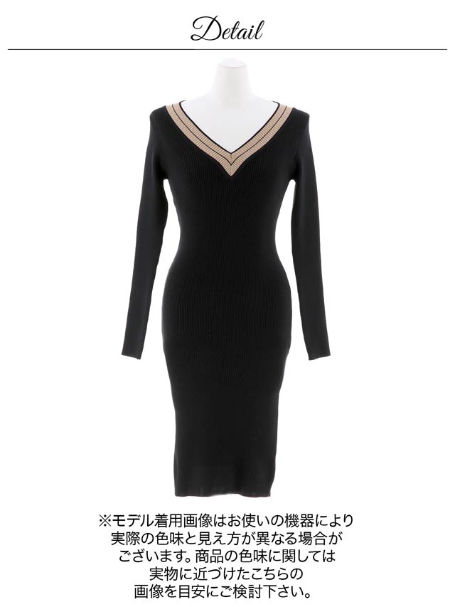 11/11再販!デコルテVネックニットタイト膝丈ワンピース[カジュアル/dazzy closet]