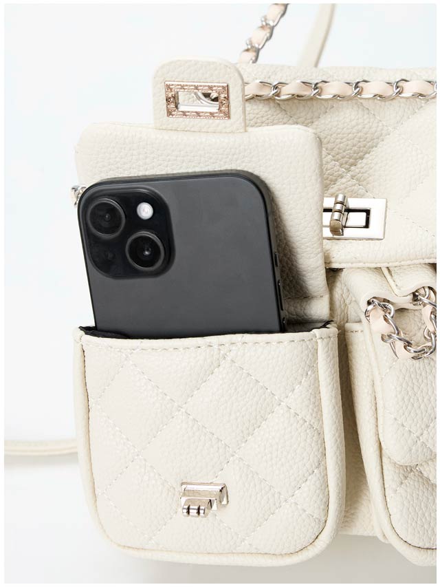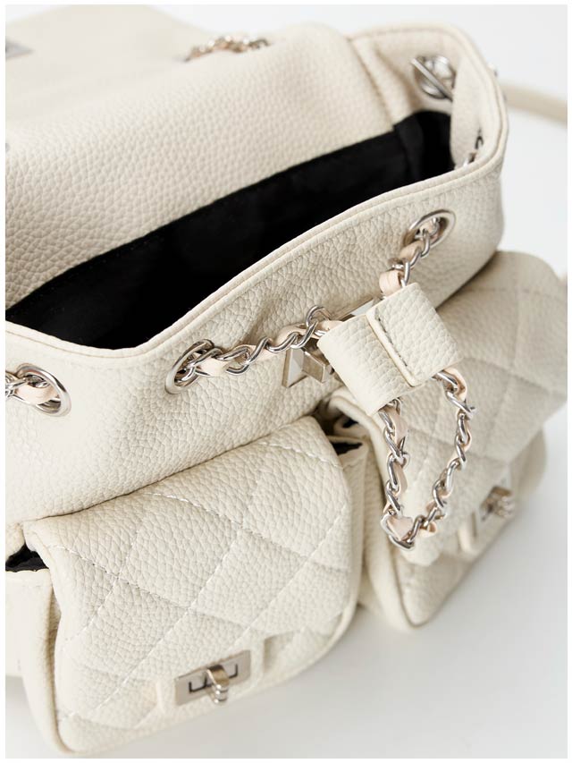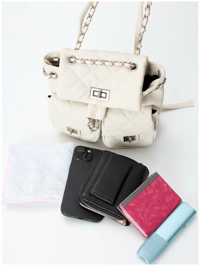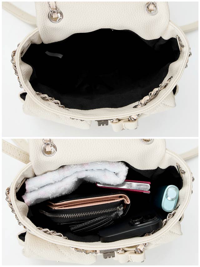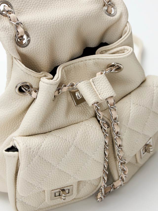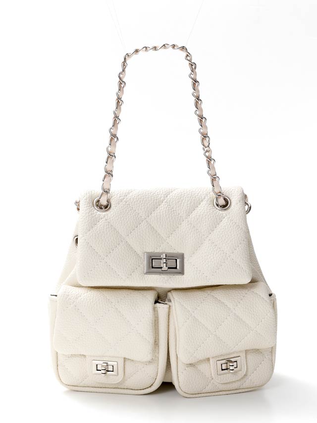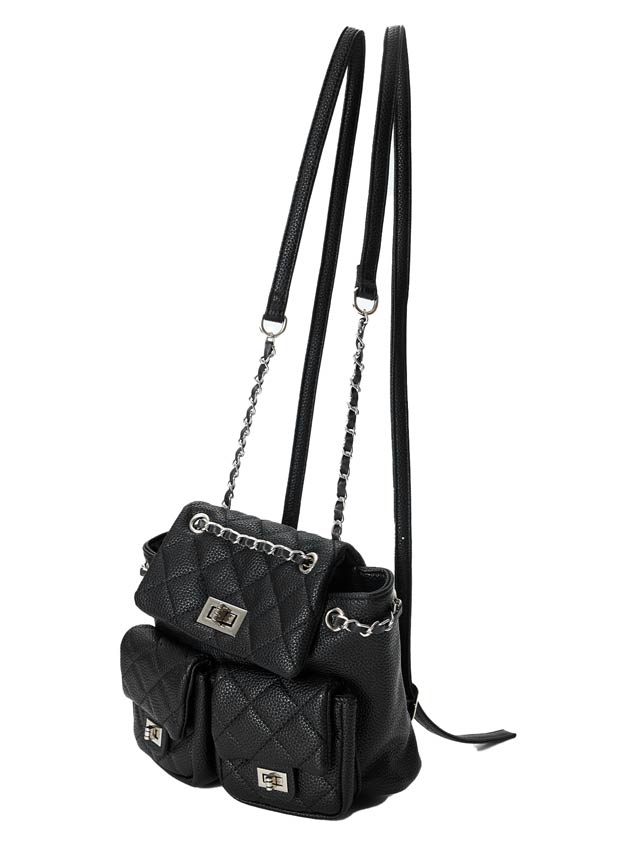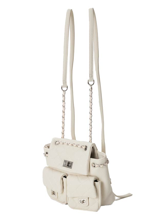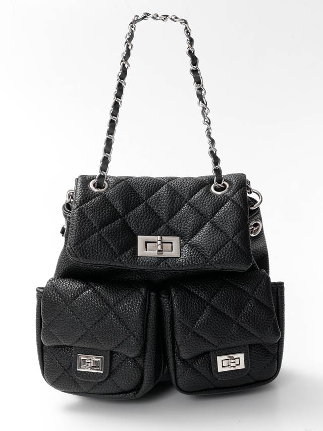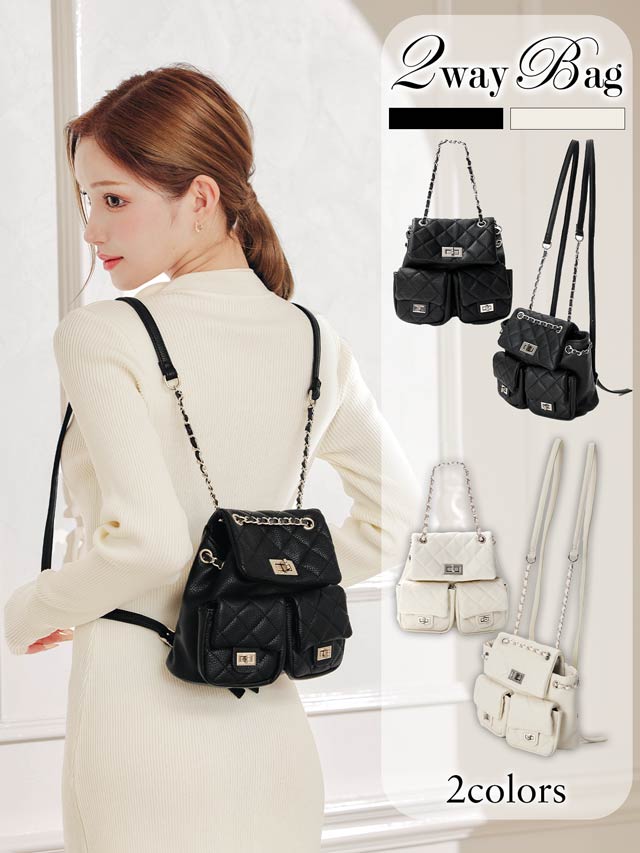 チェーンがアクセントになった上品なキルティングデザインのリュック。気分に合わせてハンドバッグとしても使える便利な2way仕様♪普段使いにもぴったりで、キレイめからカジュアルスタイルまで幅広いコーデにマッチするアイテムです◎