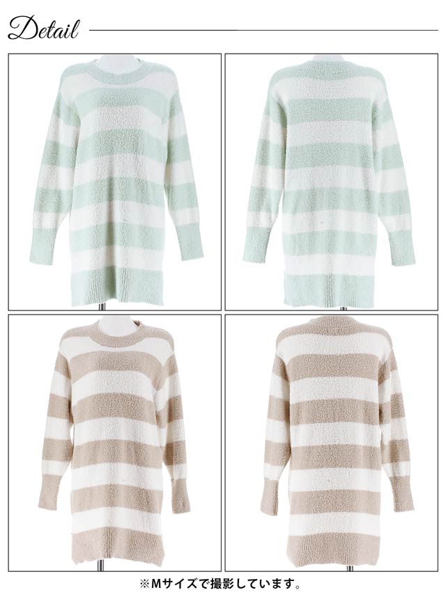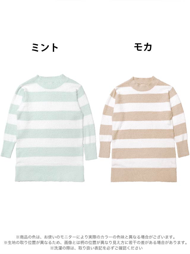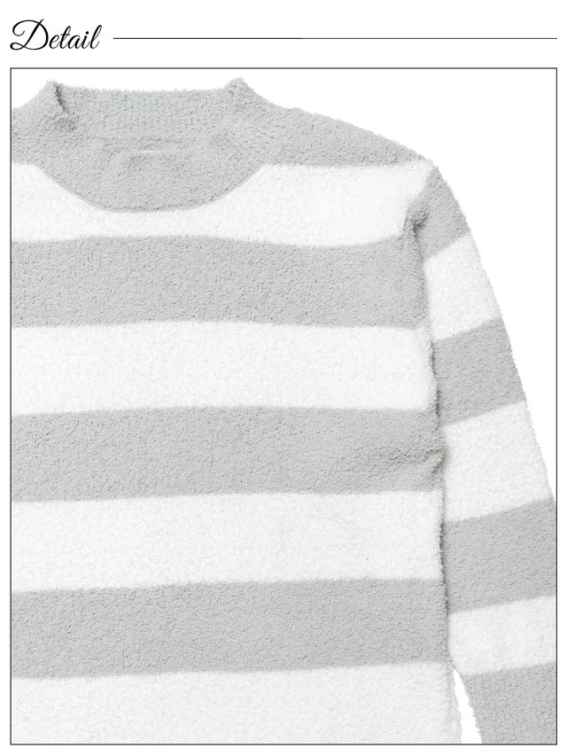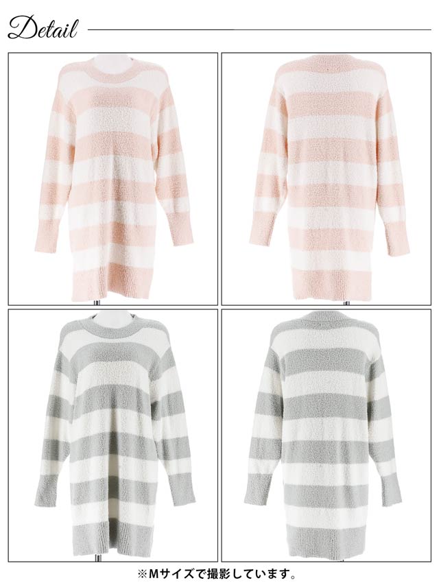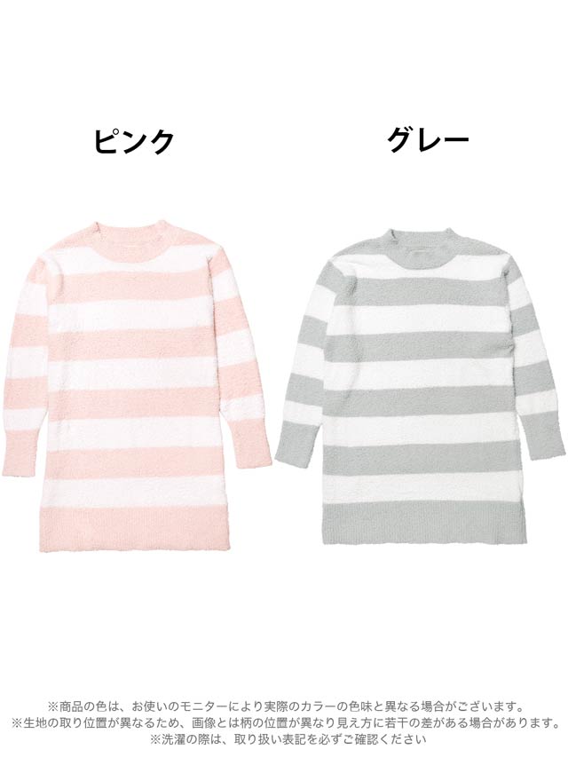 大人かわいいくすみカラーのボーダーラインがキュートなルームウェア。季節感溢れるふわふわな素材は女性らしい甘い雰囲気もプラスします。1枚で楽ちん&オシャレな着こなしが出来るのも嬉しいポイントです◎