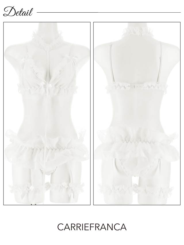 清楚なホワイトカラーとたっぷりのフリルが甘く女の子らしいムードを漂わせるランジェリー。