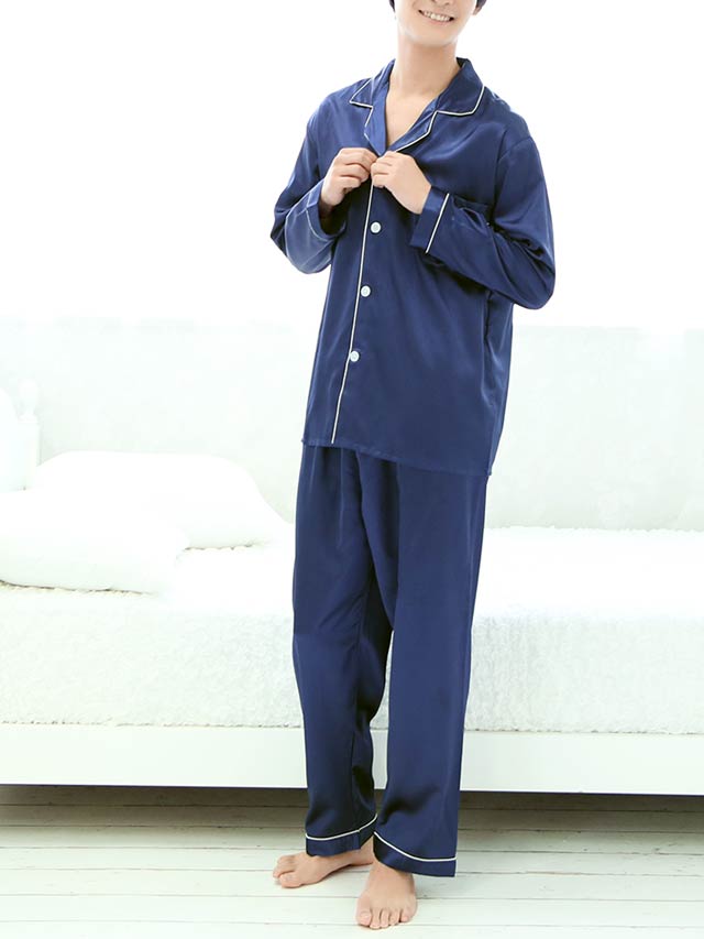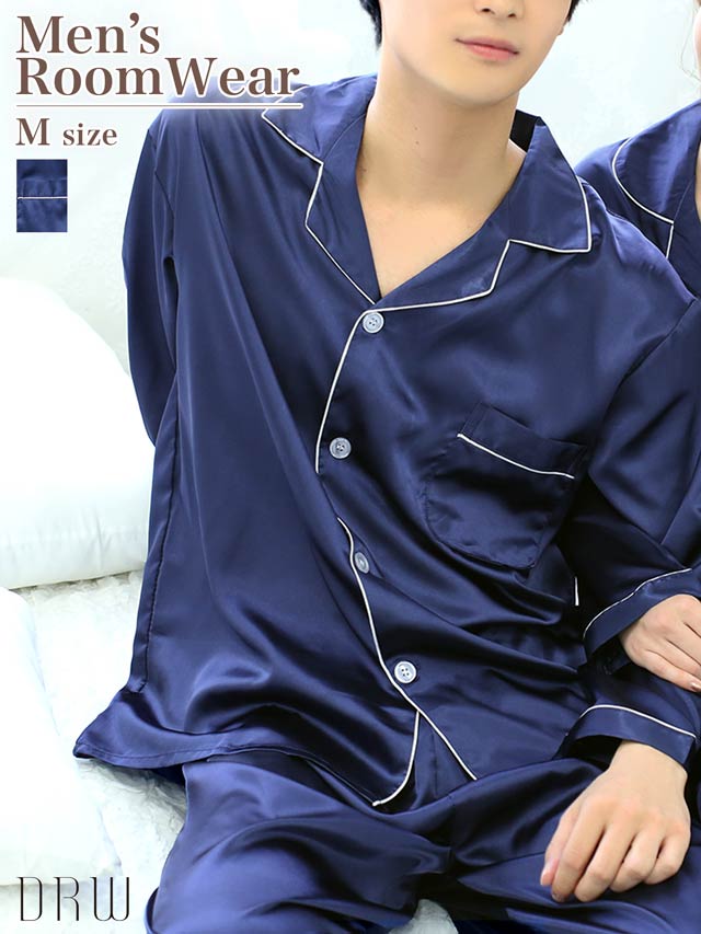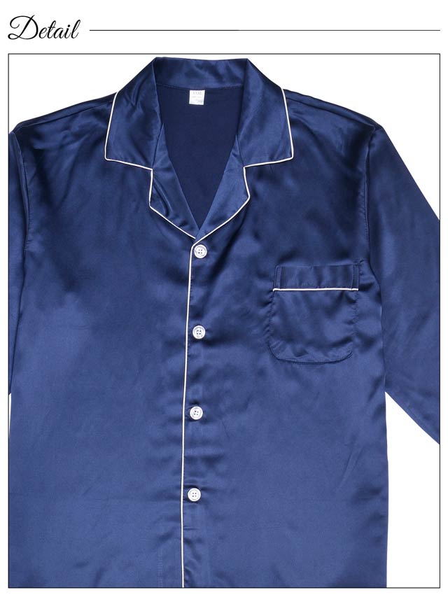 肌触りのいいさらさらのサテン生地のメンズパジャマ。前ボタン仕様なので着脱も楽チン♪落ち着いたワンカラーのシンプルなデザインで上品さもプラスしました◎