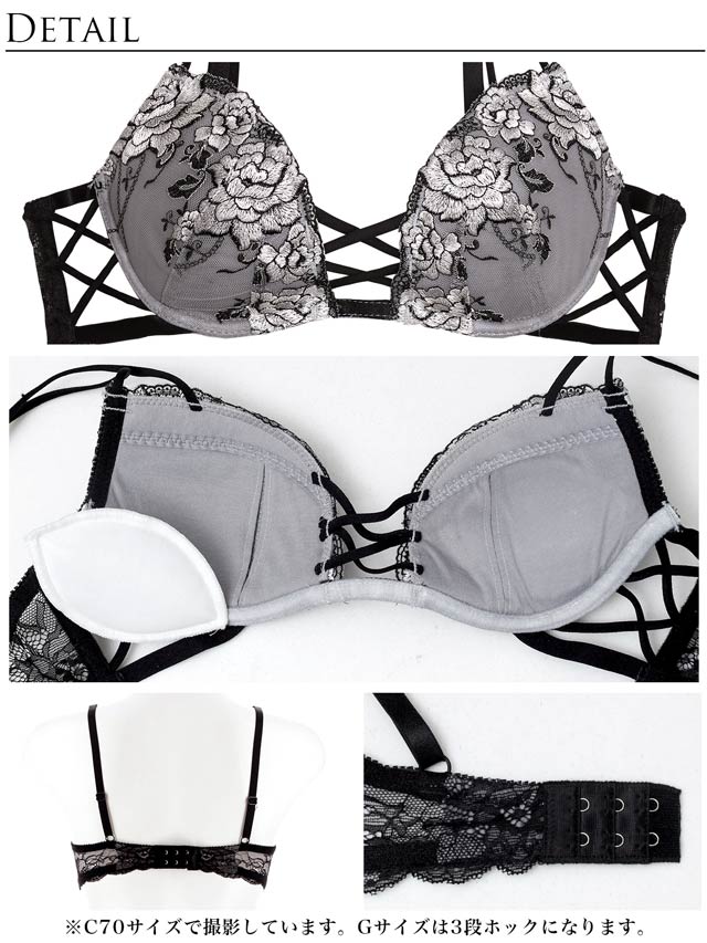 3/4カップ/ワイヤー:有(L字)/ホック:バック2段3列(EF80,85/Gカップ3段3列)